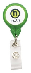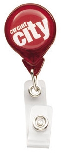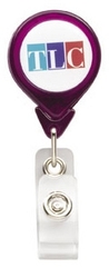 The Tear Drop Badge Holder with N-Dome (TM) features a 36" retractable cord with Stationary Slide Clip. The convenient slide clip easily attaches to pockets, purses or belts. An exclusive N-Dome decoration is included, giving a one to four color process imprint on your choice of background color.